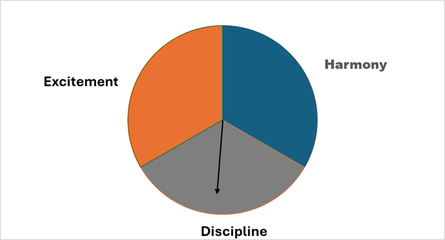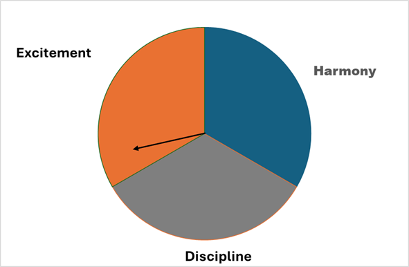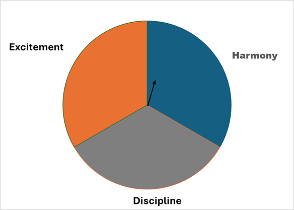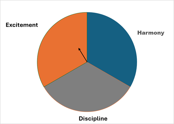 When the arrow is in harmony, this means more stability. The changes are less erratic and unpredictable and are more gradual. It is time to plan, to propose different visions of the future, reflected in several political party’s aspirations and ideologies. Some will want further change and progress – bringing the arrow back to excitement. Others will opt for more stability and support, more healing – closer the centre of harmony.